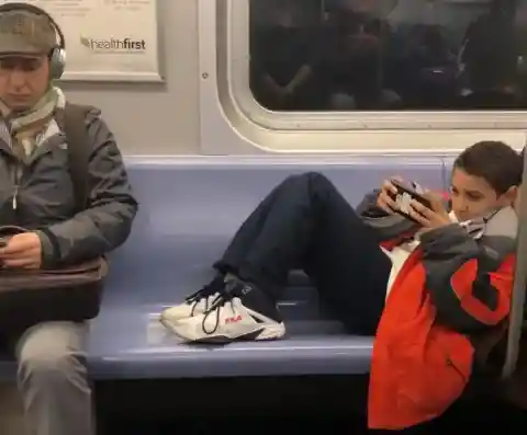 The kid, in Kim’s tweet, is the perfect example of what a “lay downer” is. He is seen stretching his legs on the bench, leaning against his mom, taking up two seats. As he played on his phone, he was apparently oblivious to how awfully rude he was being to the rest of the passengers.