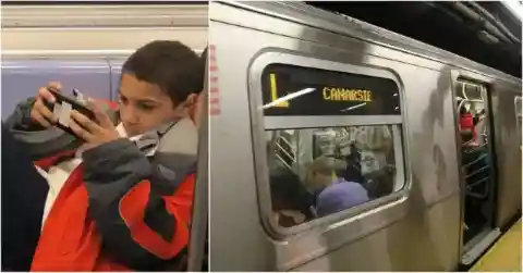 So, when she saw what happened on the subway, she knew that it had to be shared and quickly captured the crazy moment. This is what she started to snap away . . .